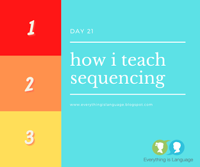 All seriousness aside, I see the value in sequencing goals. After all, a Kindergartner needs to be able to string together a halfway decent story. Granted, not everyone can sequence with all of the transition words and make it work, but it's still important.
